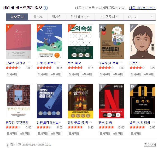 9월 14-9월20일 베스트 셀러 순위(교보문고)