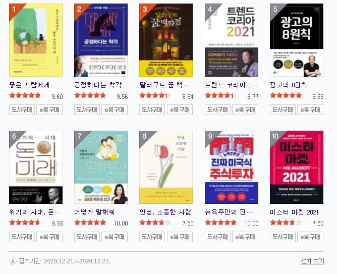 | 11월30일부터 12월6일까지 교보문고 베스트 셀러 (0) | 2020.12.11 |