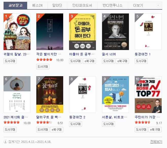 2021년 4월12일~4월18일 교보문고 베스트 셀러